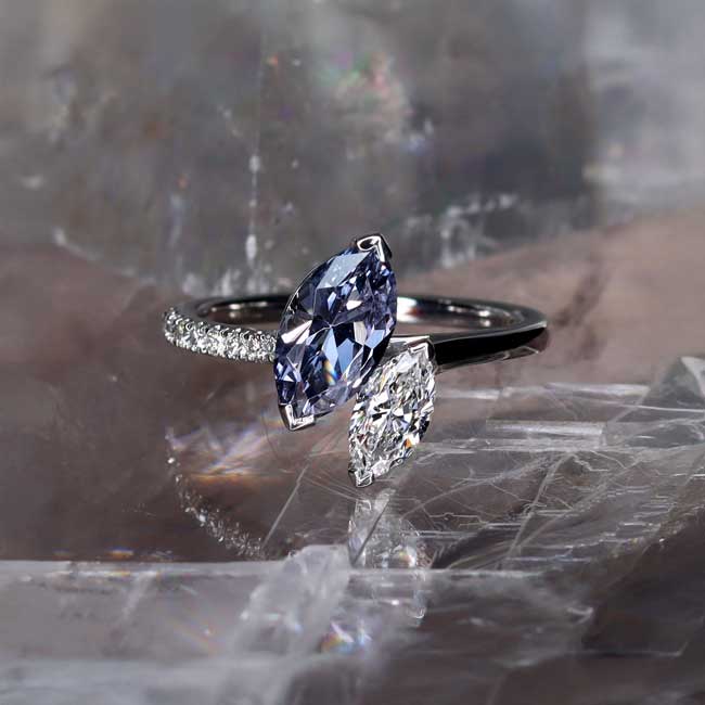Manhattan | Teal sapphire & diamond toi et moi ring
